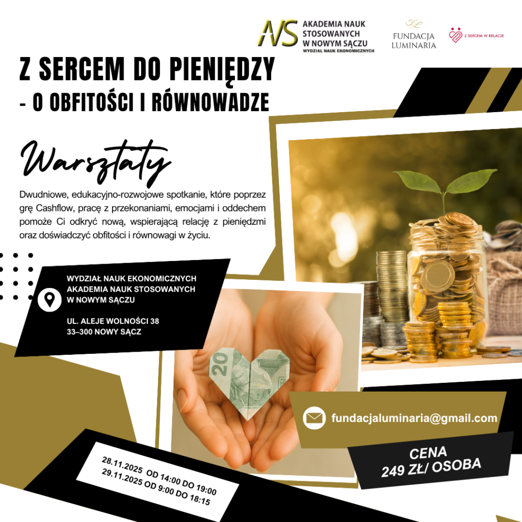 Zapraszamy na dwudniowy warsztat rozwojowo-edukacyjny, który pomoże Ci spojrzeć na finanse z nowej perspektywy – z uważnością, lekkością i sercem.